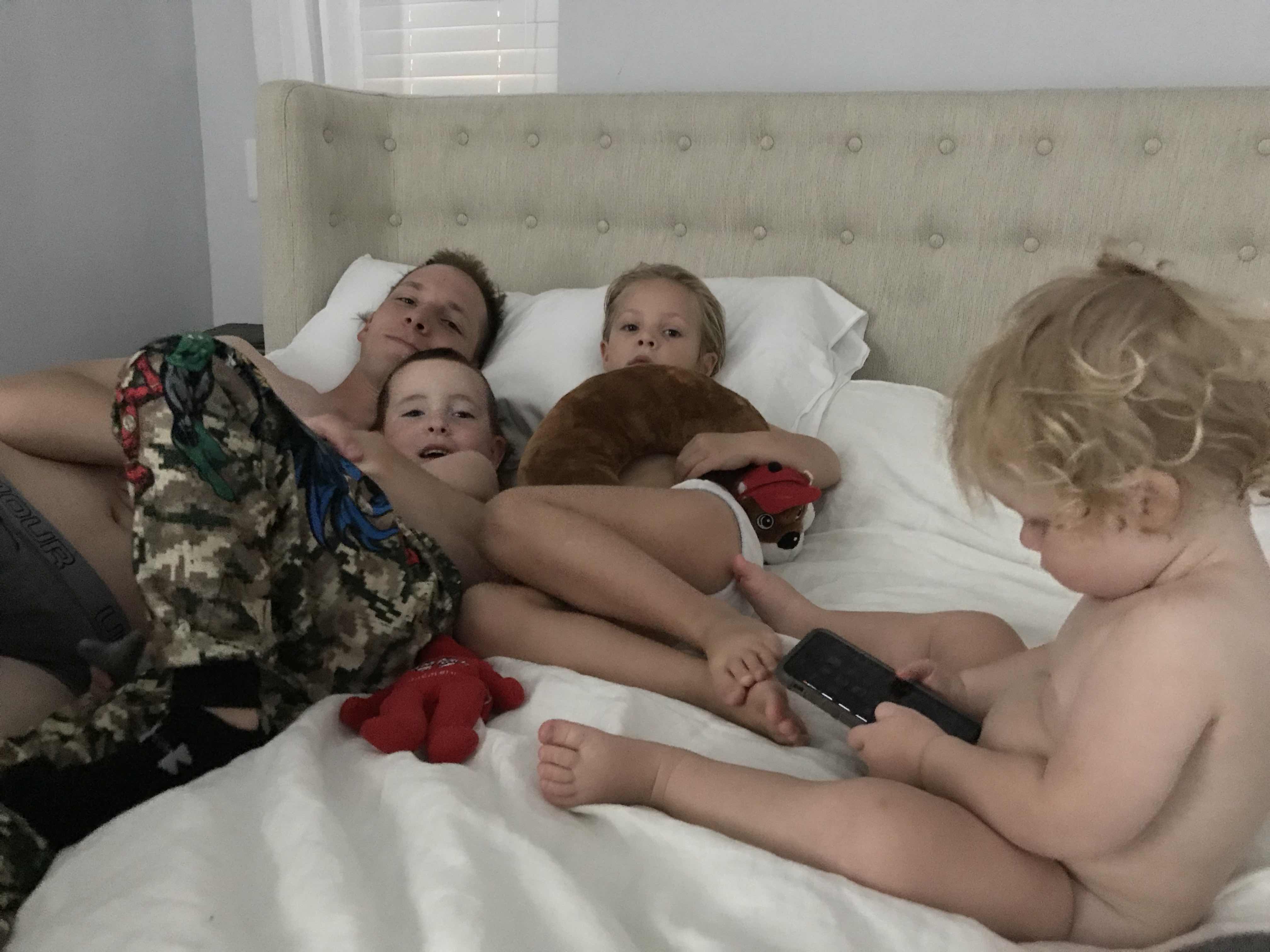 DJ Ella Mae picking the country beats on Dad’s Spotify while the rest of us cuddle and sing along in the first moments of our morning. They’ve been all about Dad this week and I’m totally loving every second of it. I think he is too.