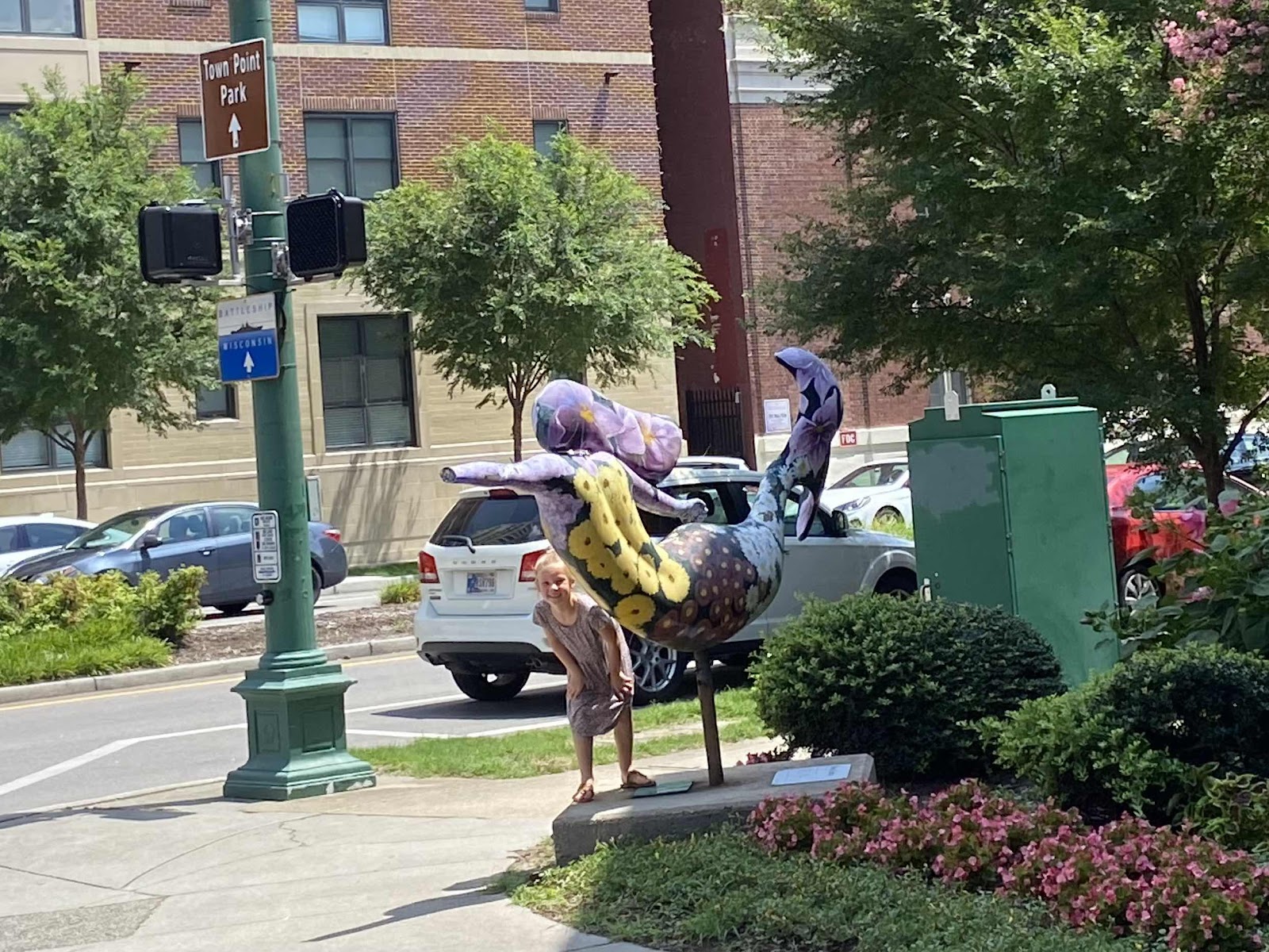 At each new mermaid, a different kid jumped out of the car to snap a picture.